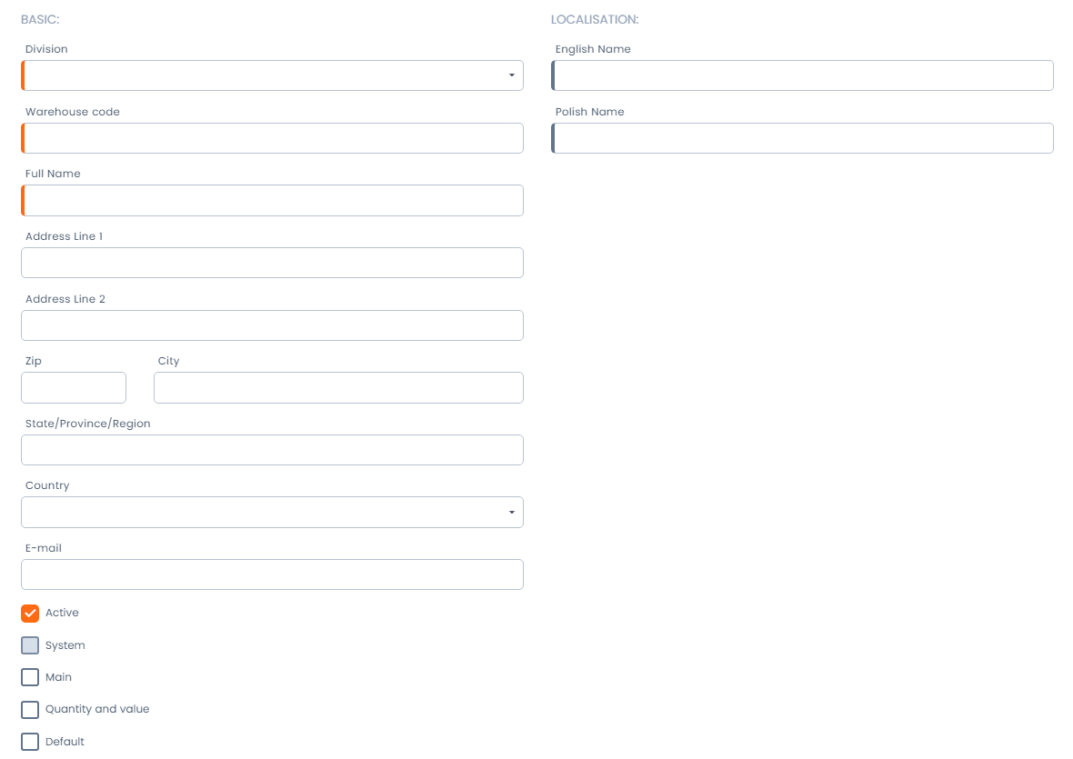 Warehause – nazwa magazynu utworzonego wcześniej w sekcji Administration => Warehause
