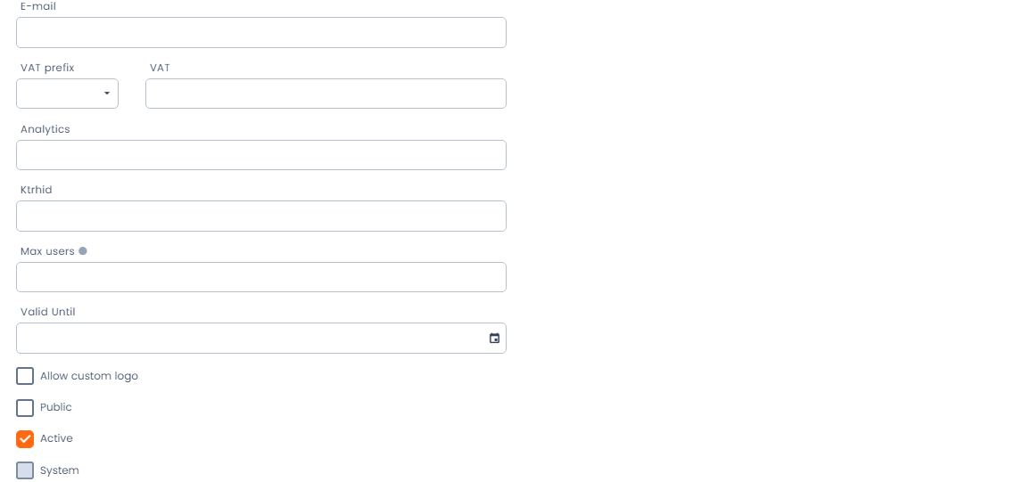 Max users – Maksymalna liczba użytkowników przypisana dla firmy