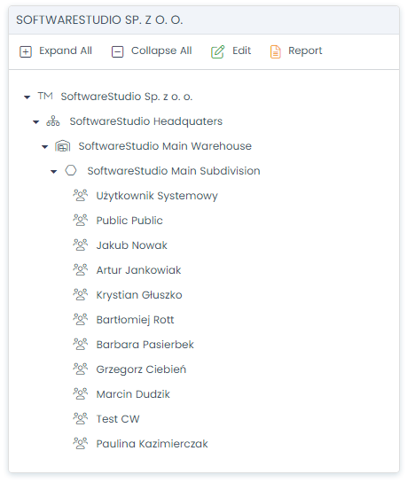 Moduł Administracji pozwala na hierarchiczne uporządkowanie struktury firmy poprzez tworzenie firm, oddziałów, magazynów oraz pododdziałów.