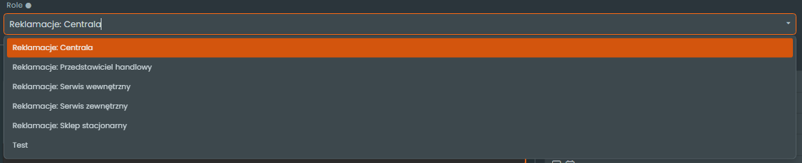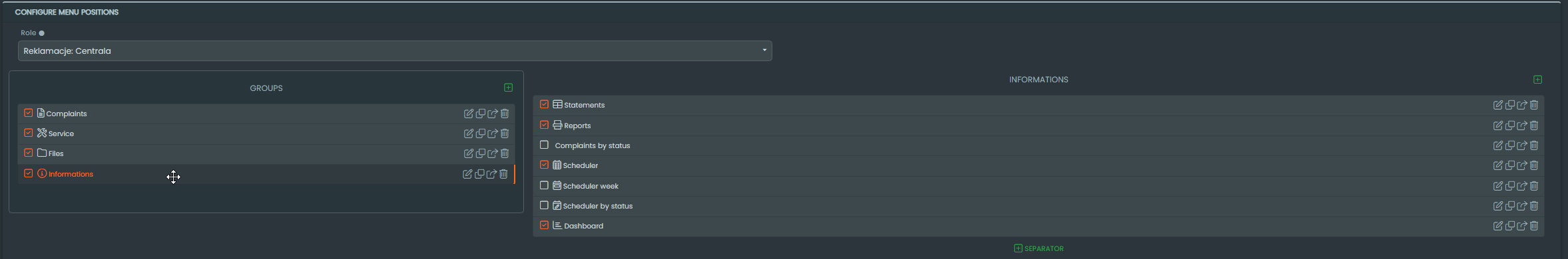 ROLE: Wybór roli umożliwia nam wybranie i zdefiniowanie jak ma wyglądać menu dla danej roli: