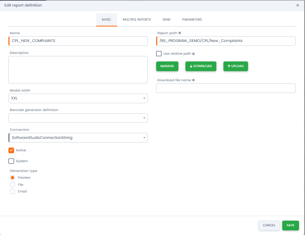 - Report path – określenie ścieżki dostępu wzorca raportu na serwerze,