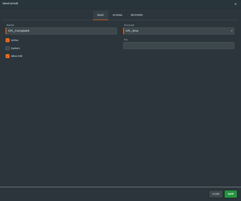 - SYSTEM – Oznaczenie czy definicja Send SMS jest elementem konfiguracji systemu