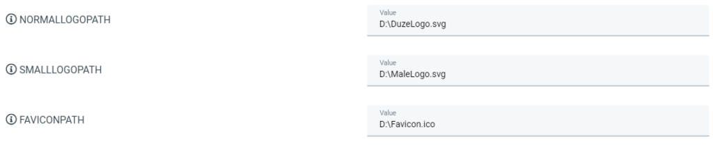 Parametry NormalLogoPath, SmallLogoPath i FaviconPath mogą zostać zmienione z poziomu paneli administracji i konfiguracji. W przypadku braku wartości lub nieodnalezienia pliku zostanie wykorzystane logo SoftwareStudio.